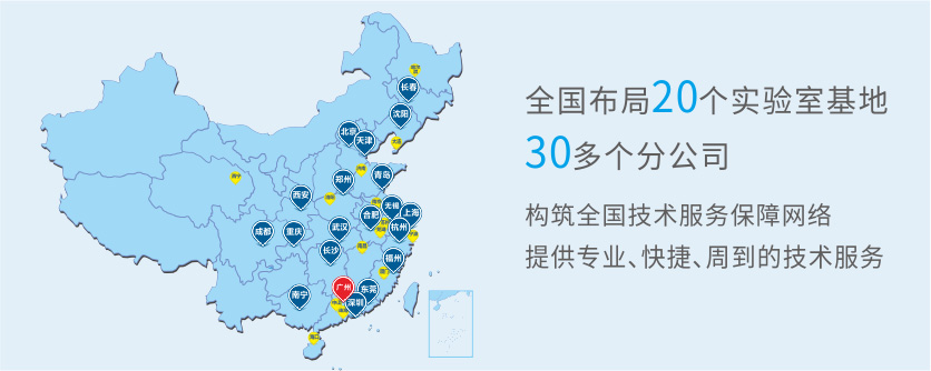 广电计量初步完成全国战略布局,在全国建立了20个检测基地和38个业务分公司,形成覆盖全国的服务保障网络,服务遍布国防军工、航空航天、汽车、轨道交通、通信、电力、石化、生物医药、环保、食品等行业和领域。经过多年发展,广电计量已成为众多政府机构、科研院所以及大型知名企业认可的品牌。 在当今以品质决胜市场的时代,广电计量将秉承高端的战略定位,不断完善实验室技术能力,提高服务水平和质量,拓展服务网络,持续改进,不断超越,致力打造计量检测行业的著名品牌,成为具有行业领导力、市场公信力和国际影响力的计量检测龙头企业,为实施质量强国战略、促进制造强国崛起贡献力量。