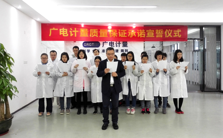 为强化全国一体化质量管控体系,坚守企业生存发展生命线,为产品质量安全保驾护航,同时在同行业、全社会唤起计量检测机构、生产企业、社会公众对真实数据、质量安全的重视,3月9日-17日,广电计量在全国16大检测基地相继举办技术人员质量保证承诺宣誓仪式。他们举起右手,紧握拳头,齐声用共同的誓词向客户、向社会、向自己作出郑重承诺!