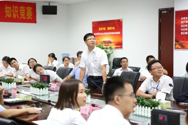 知识竞赛通过团队形式开展,分别由职能综合党支部、市场综合党支部、计量综合党支部、计量长力党支部、计量电子党支部、环境中心党支部、检测综合党支部和九顶山锋方广党支部的骨干组成8支竞赛队伍。竞赛设个人必答题、小组抢答题和小组风险题,题目类型涵盖单选、问答及填空,均采取随机抽题答题的方式进行。内容包含习近平新时代中国特色社会主义思想、党的十九大报告、新党章、习总书记对广东工作重要指示批示精神和国有企业党建工作会议精神等。