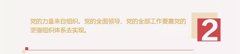 党的力量来自组织。贯彻落实新时代党的组织路线,加强党的组织体系建设是基础。党中央是大脑和中枢,必须有定于一尊、一锤定音的权威。党的地方组织的根本任务是确保党中央决策部署贯彻落实,做到有令即行、有禁即止。基础不牢,地动山摇。要从严从实加强党的基层组织建设,以提升组织力为重点,加强各领域党建工作,加强社会组织党的建设,加强支部标准化、规范化建设,把党的基层组织打造成坚强战斗堡垒。